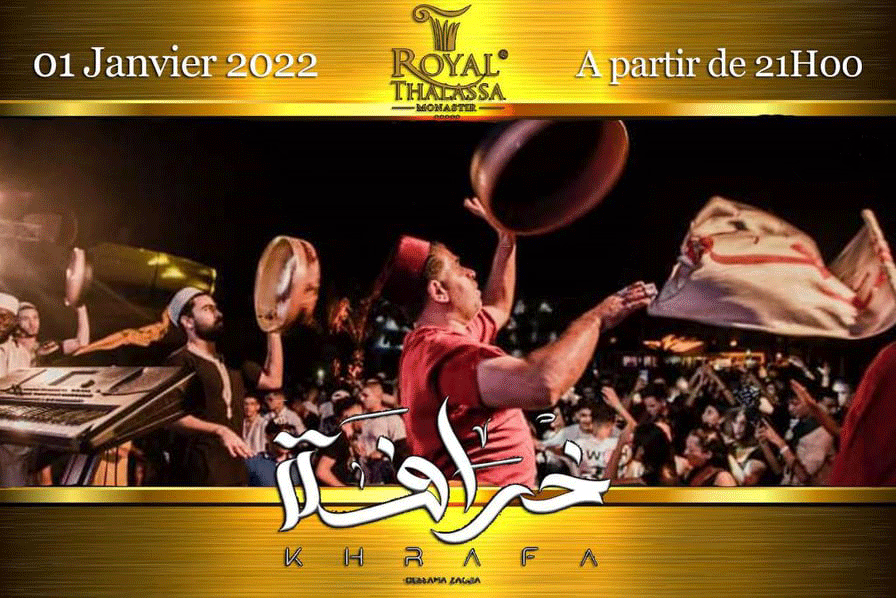 Samedi 01/01/2022 : Bye-bye 2021, Bonjour 2022 ! Pour garder les festivités du nouvel an durant le wee-kend , Royal Thalassa vous offre le Big show‘Khrafa Project’ .