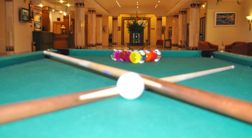 Un restaurant à la carte " Horizon ", un restaurant menu " L'oasis ", une pizzeria " Pizza marina " et un barbecue " La Palmeraie Détente : Détente et loisirs sont au rendez-vous au bar américain "Symphonie", au salon bar " la détente", au barbecue " la Palmeraie", à la discothèque "Disco Marina" et au café maure.